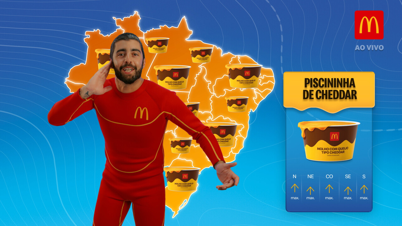 Para apresentar as novidades da família Cheddar que chegam nos restaurantes do McDonald’s em todo o Brasil nesta terça-feira (13), o Méqui convocou Pedro Scooby para protagonizar a campanha, que conecta o clima do verão a uma previsão irresistível: vai ter muito cheddar.