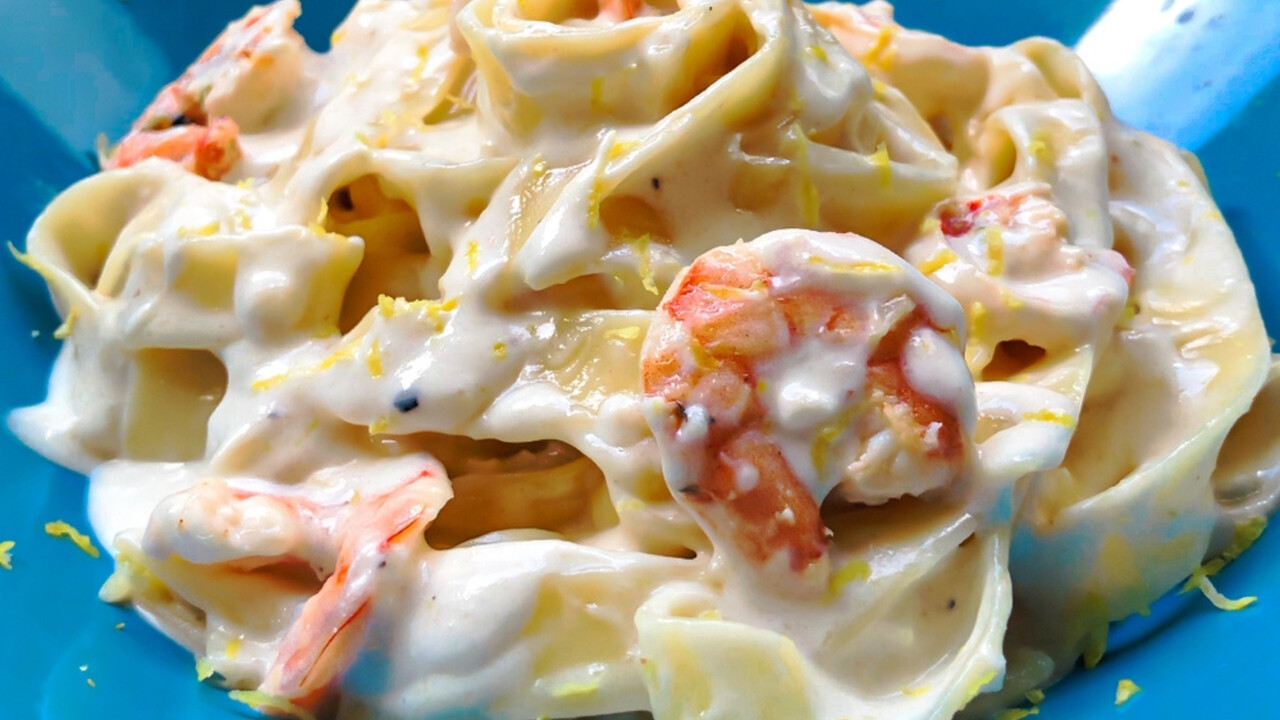 O molho Alfredo, preparado com creme de leite fresco e parmesão, ganha vida com os camarões dourados e o perfume cítrico do limão, resultando em uma combinação equilibrada e irresistível. Cada garfada revela a harmonia entre textura e sabor, uma receita feita para quem acredita que cozinhar também é um gesto de carinho consigo e com quem se ama.