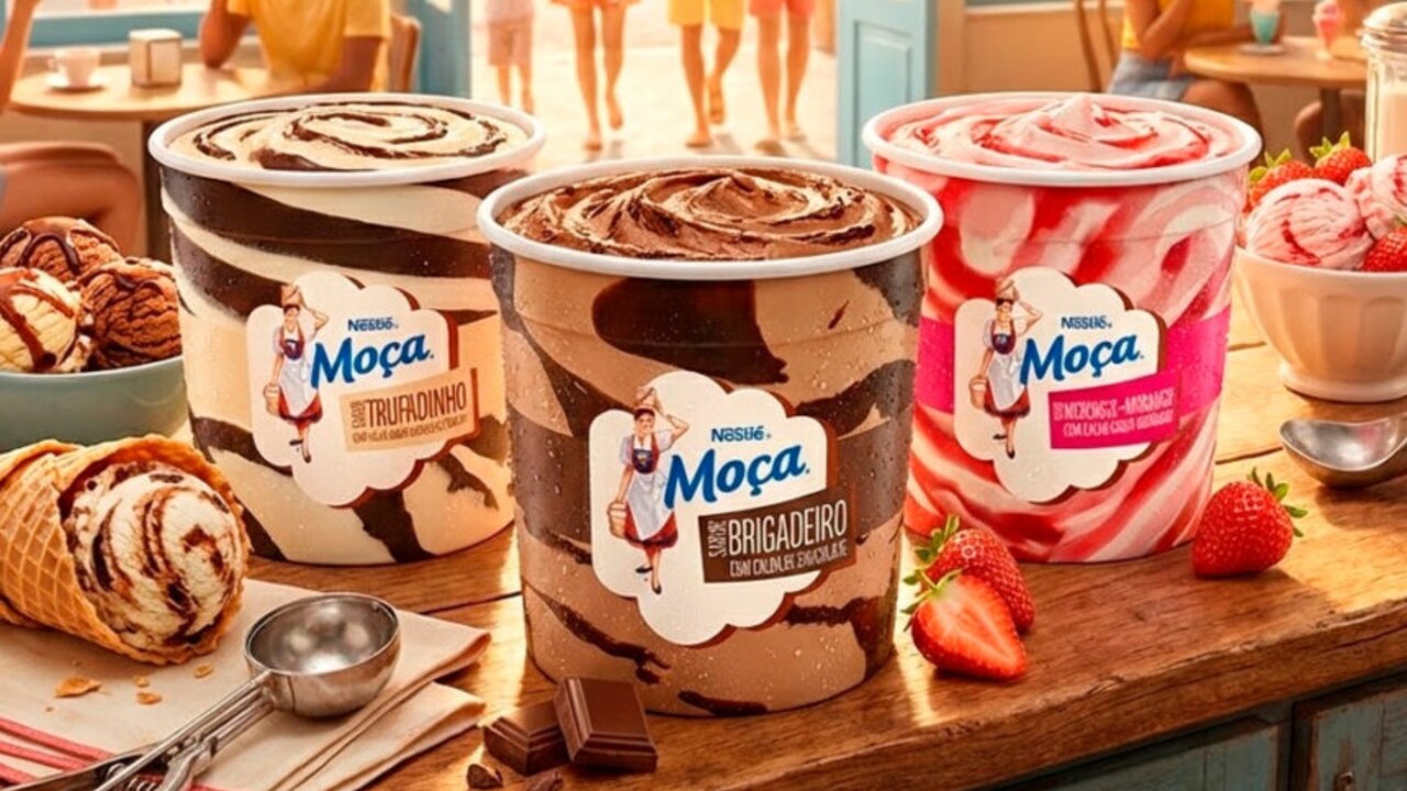 Reconhecida por 98% dos brasileiros e presente há mais de um século na memória afetiva nacional, Moça inspira os três novos sabores que chegam aos freezers: Moça Brigadeiro com calda de chocolate, Moça Merengue de Morango com calda sabor morango e Moça Trufadinho com calda sabor chocolate trufado. Cada pote foi desenvolvido para combinar o tradicional leite condensado da marca com a expertise técnica da Froneri, resultando em texturas marcantes e combinações indulgentes.