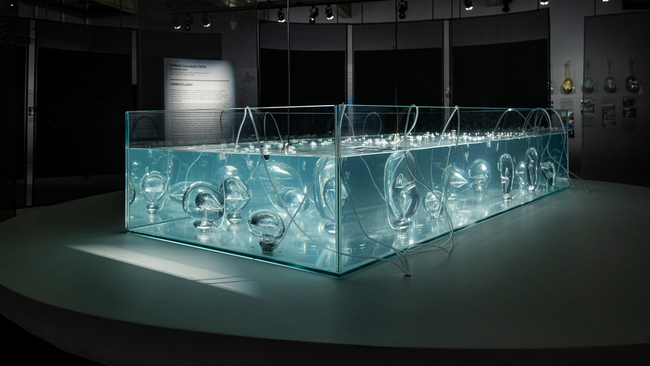 A curadoria destaca diversos aspectos da água e sua gestão na sociedade nipônica, a partir de exemplos como o Canal Subterrâneo de Escoamento da Área Metropolitana de Tóquio – maior edificação de desvio subterrâneo de inundações do mundo -, e os diferentes tipos de águas termais e suas propriedades. A mostra também apresenta uma gravura em estilo ukiyo-e, de 1857, de Utagawa Hiroshige; a obra “Buloklok”, de Tomoko Sauvage, inspirada em uma clepsidra (relógio de água) que emite padrões sonoros; e a instalação “Sans room”, de Shiori Watanabe, que cria um ecossistema artificial de circulação microbiana por meio da água.