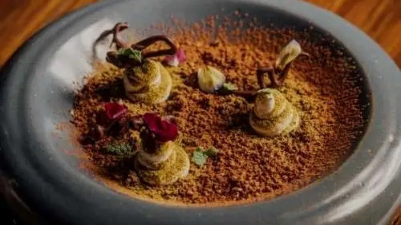 • Pachamama: manjar peruano com terra nikkei, merengue e pó de chá verde;