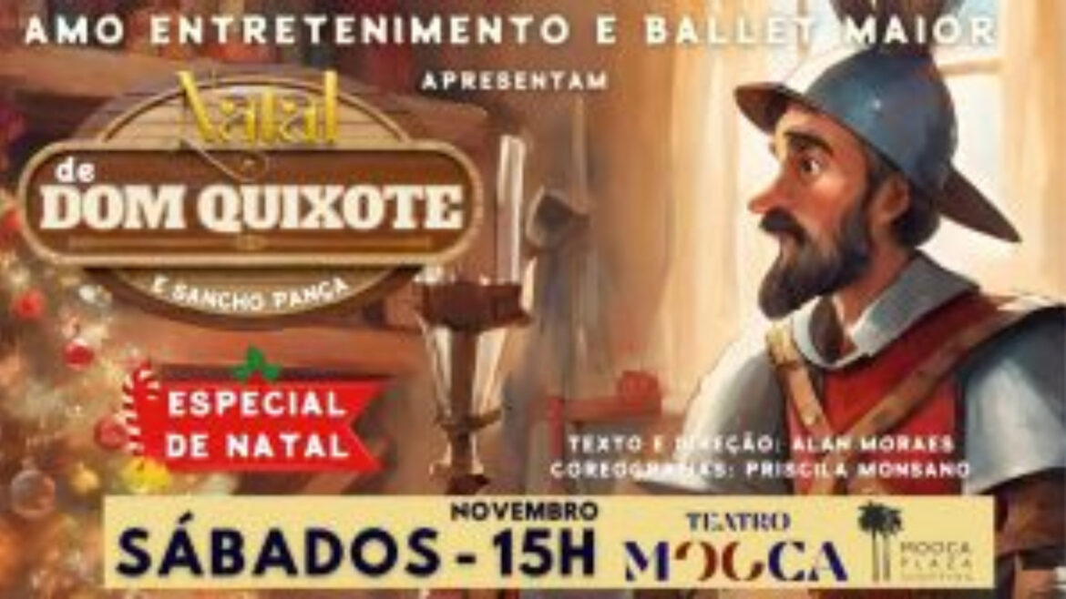 O Teatro Mooca, localizado no Mooca Plaza Shopping, recebe a peça “Dom Quixote e a Busca do Natal Perfeito”. O especial de Natal promete levar encantamento para crianças e adultos de todas as idades. Até 30 de novembro, o público pode assistir ao espetáculo às quintas-feiras, sábados e domingos com sessões em diferentes horários.