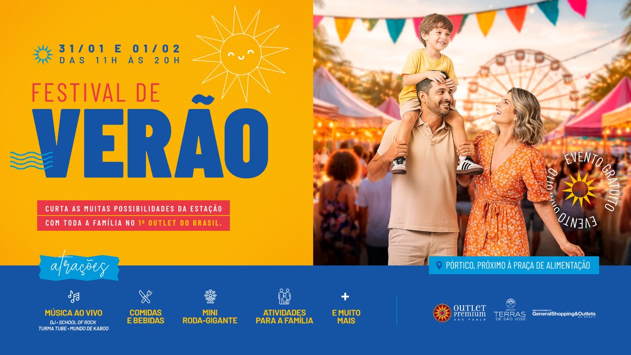 O Outlet Premium São Paulo, localizado em Itupeva, na região de Jundiaí, preparou um verão ainda mais vibrante para seus visitantes com a realização do Festival Verão. Nos dias 31 de janeiro e 1º de fevereiro, o empreendimento recebe uma programação especial ao ar livre que reúne lazer, música, gastronomia e diversão para toda a família, com atrações culturais gratuitas.