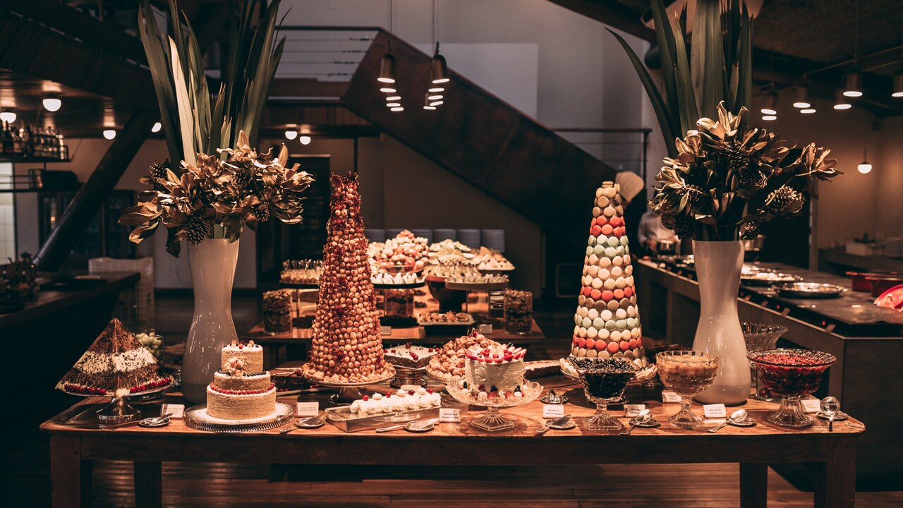 A mesa de sobremesas coroa a noite com um verdadeiro banquete doce:  Torta dos Reis com honey comb e Brulée de cupuaçu com geleia de açaí dividem espaço com criações como a Guirlanda de especiarias com ganache de cumaru e frutas vermelhas. Para quem prefere opções mais leves, há Carpaccio de figo bruleé com crumble de amêndoas e Tart de framboesa com frangipane de pistache.