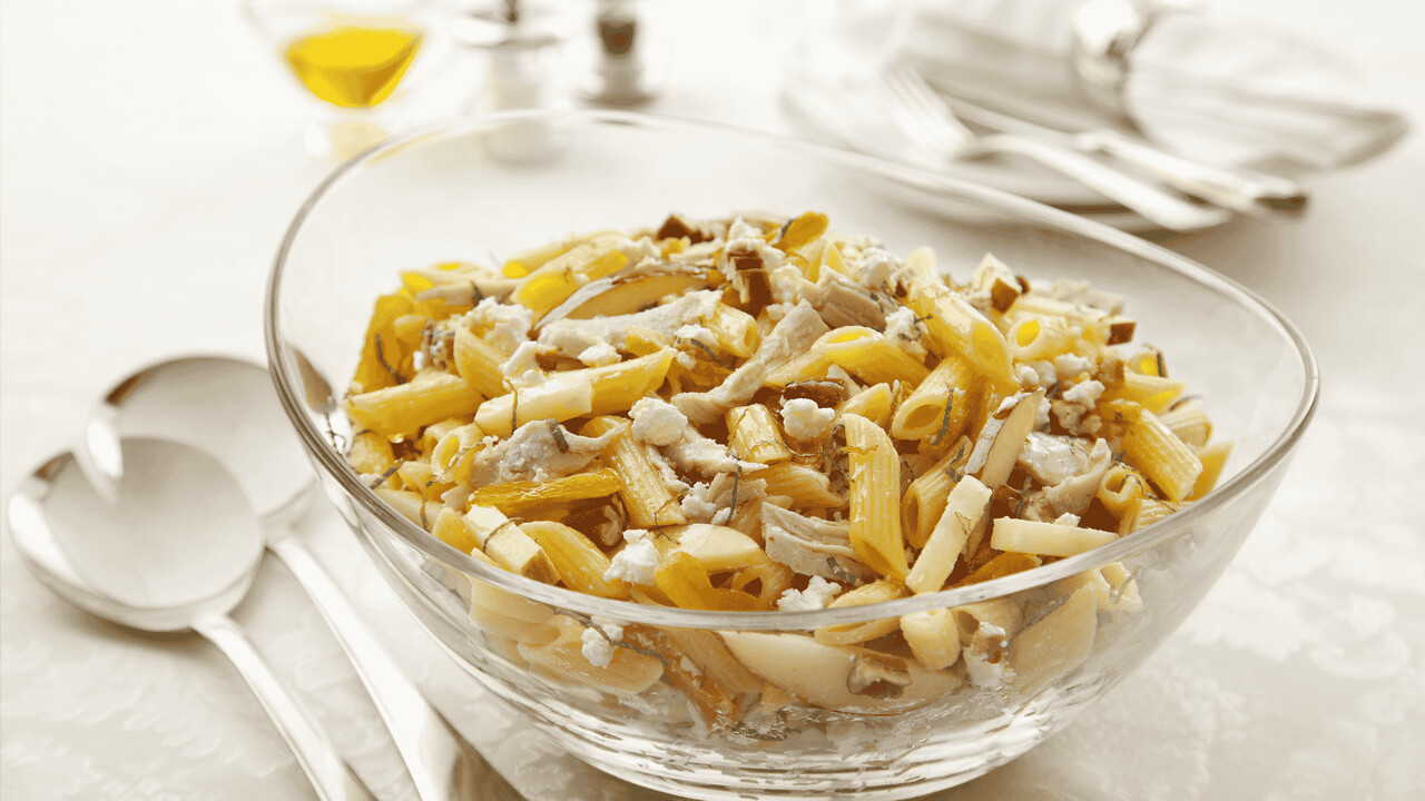 Aprenda uma receita especial que combina massa, frutas, peru e queijo de cabra
